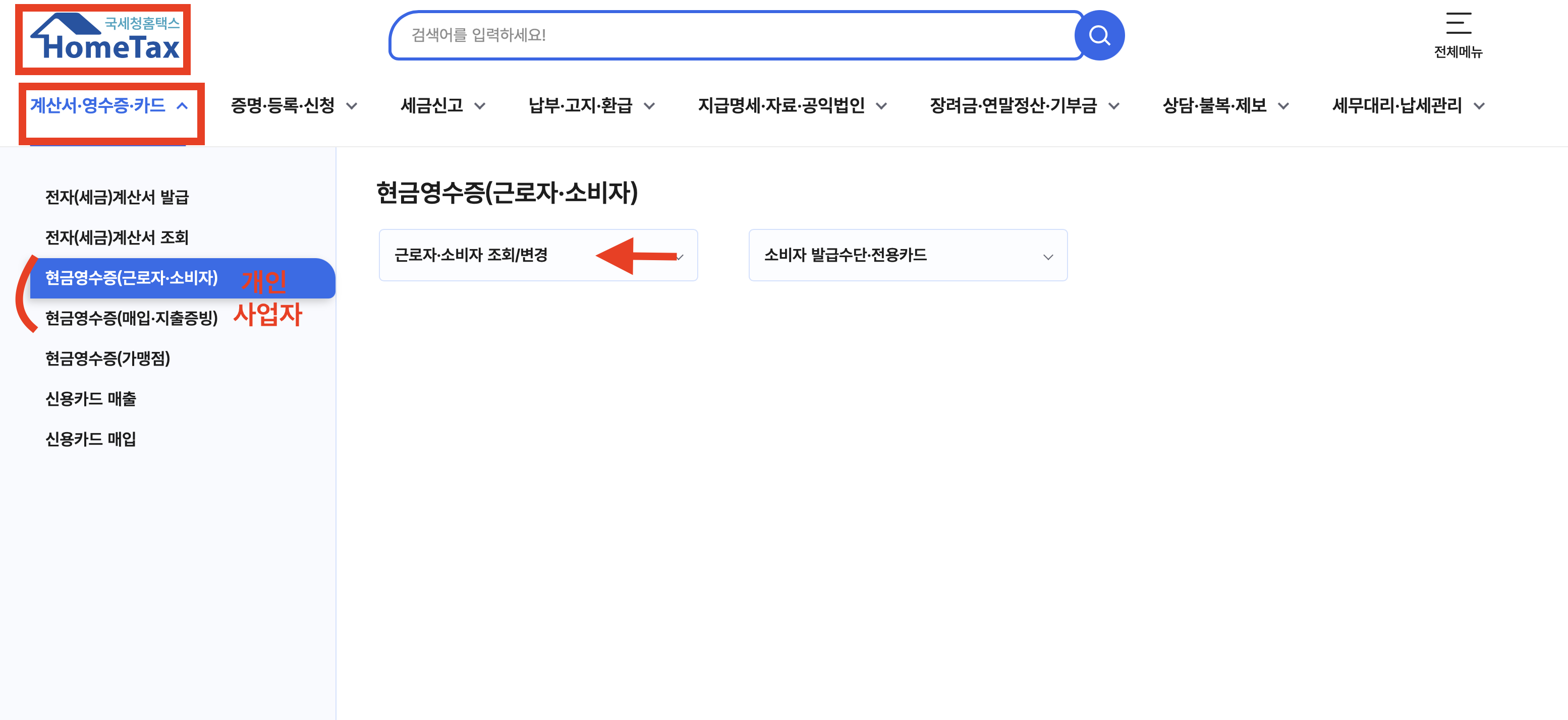 국세청 홈택스를 통한 현금영수증 조회 방법