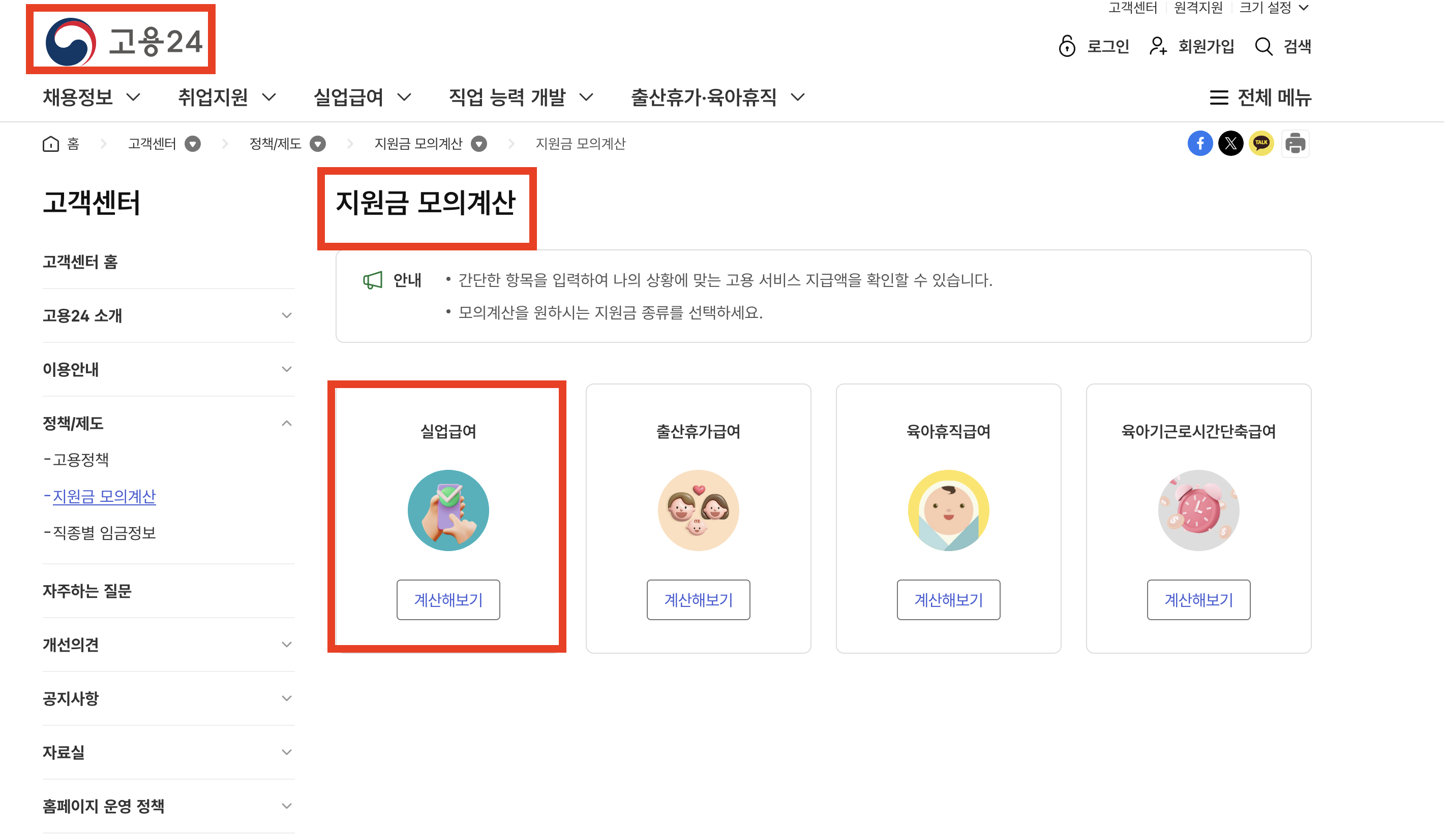고용24 홈페이지에서 실업급여 지원금 모의계산이 가능합니다.