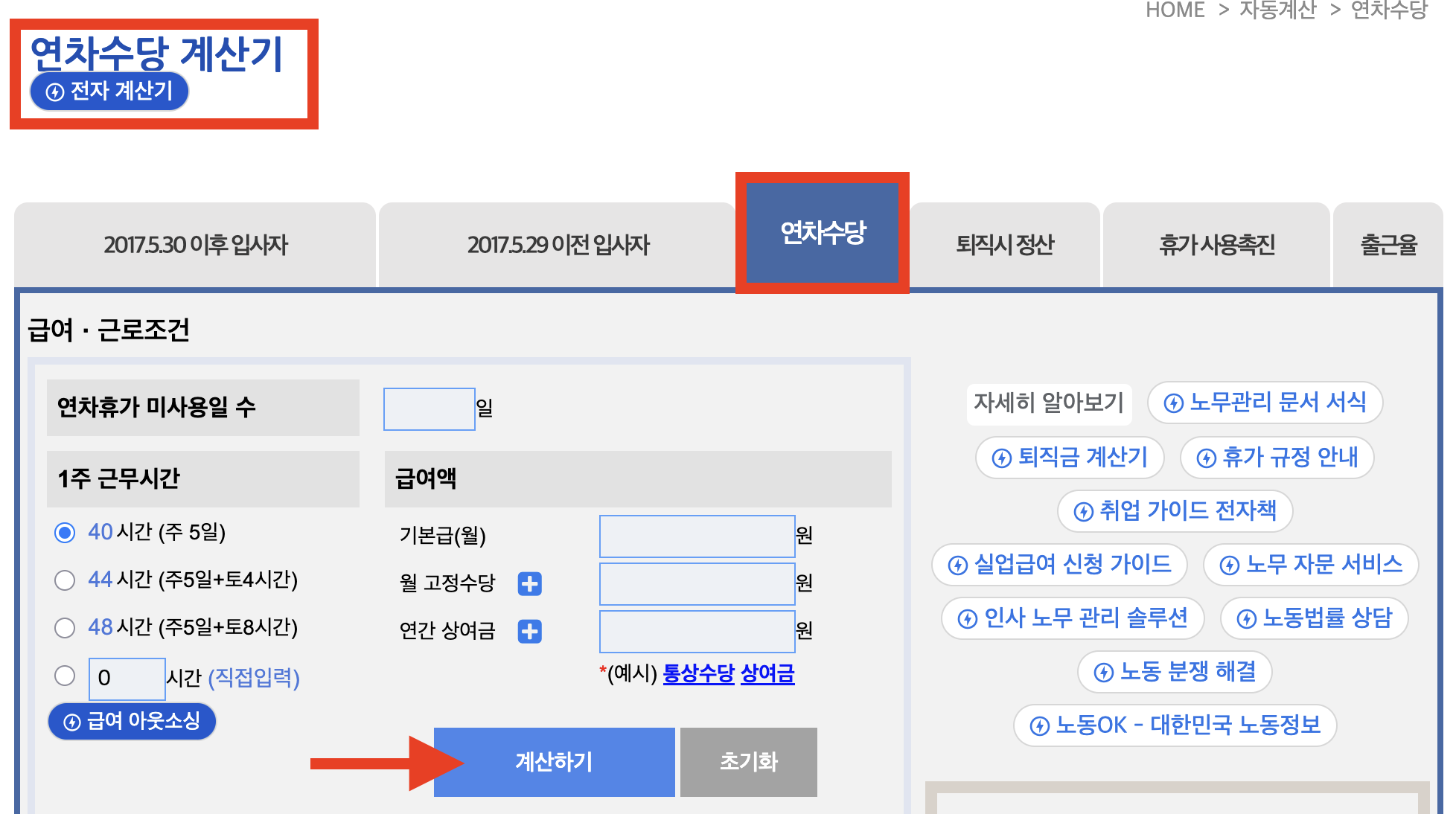 연차수당 계산기 - 근로 계산기