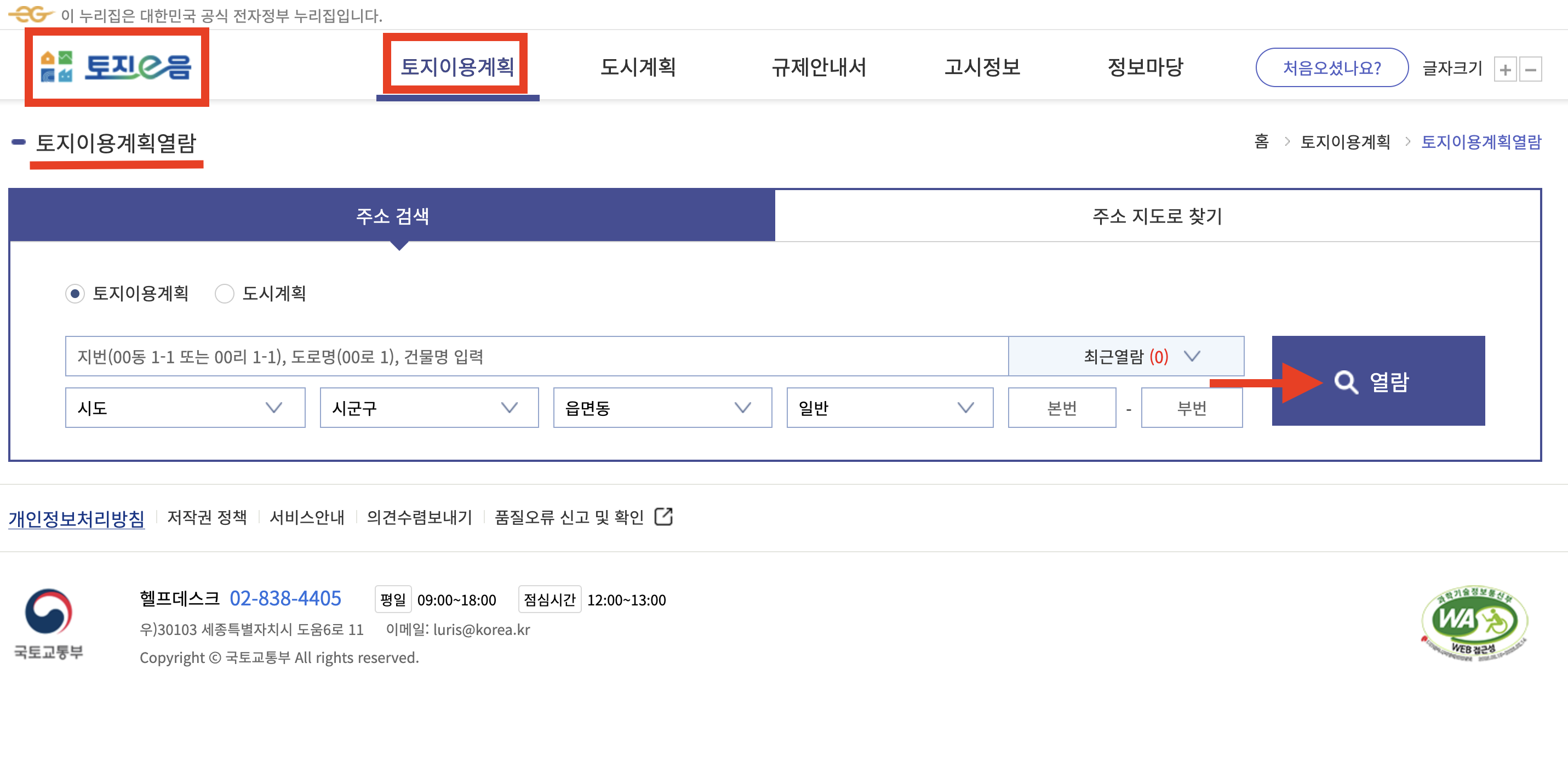 특히 국토교통부의 토지이음(토지이용규제정보서비스가 통합)이 가장 정확하고 최신 정보를 제공합니다.
