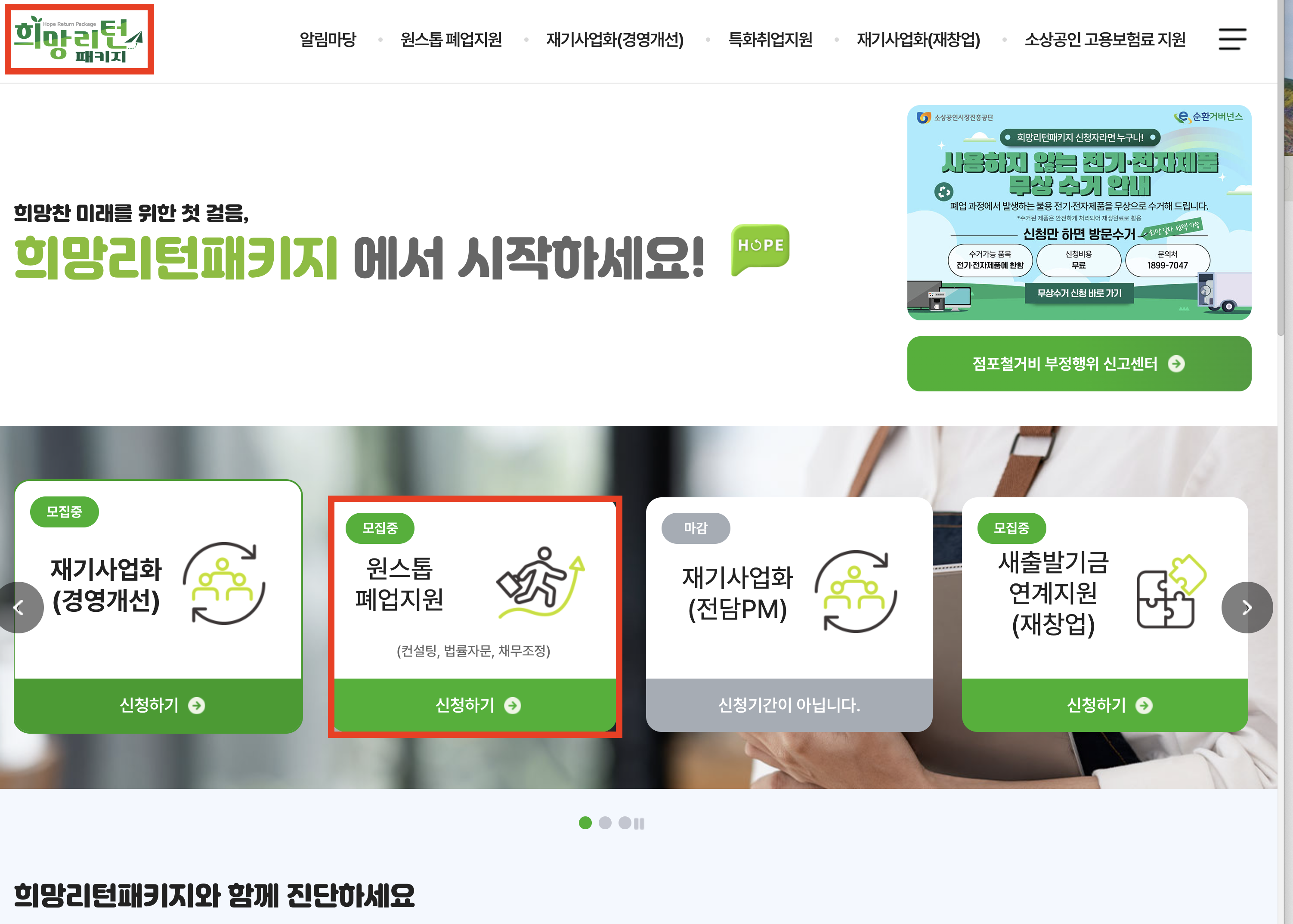* 희망리턴패키지 신청 메뉴 선택