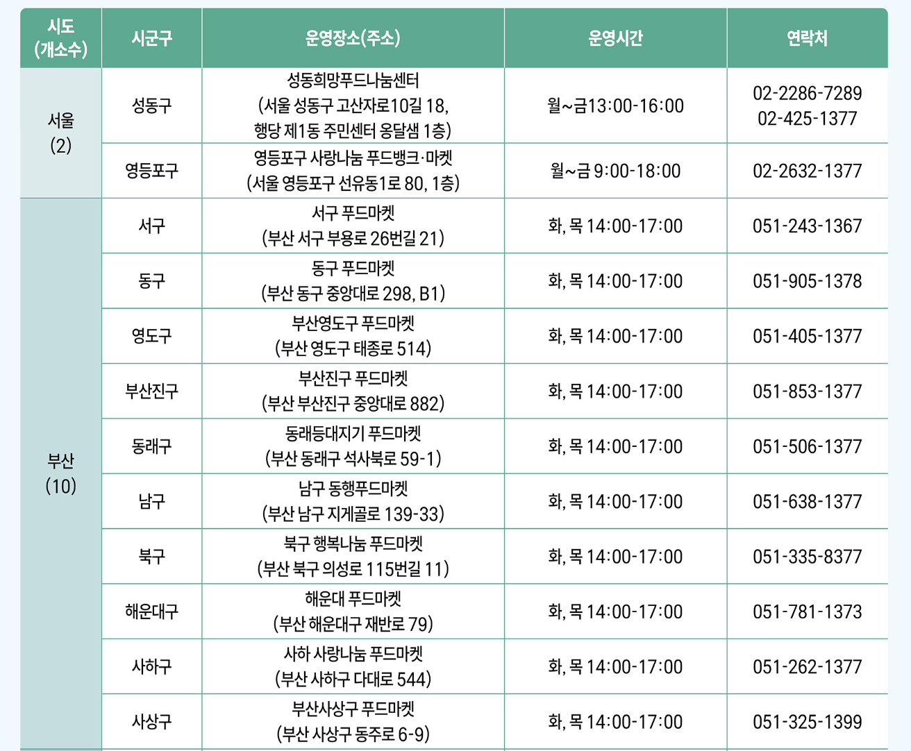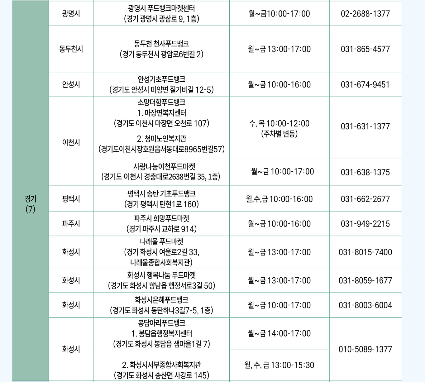 예) 수원 푸드마켓, 화성 푸드뱅크